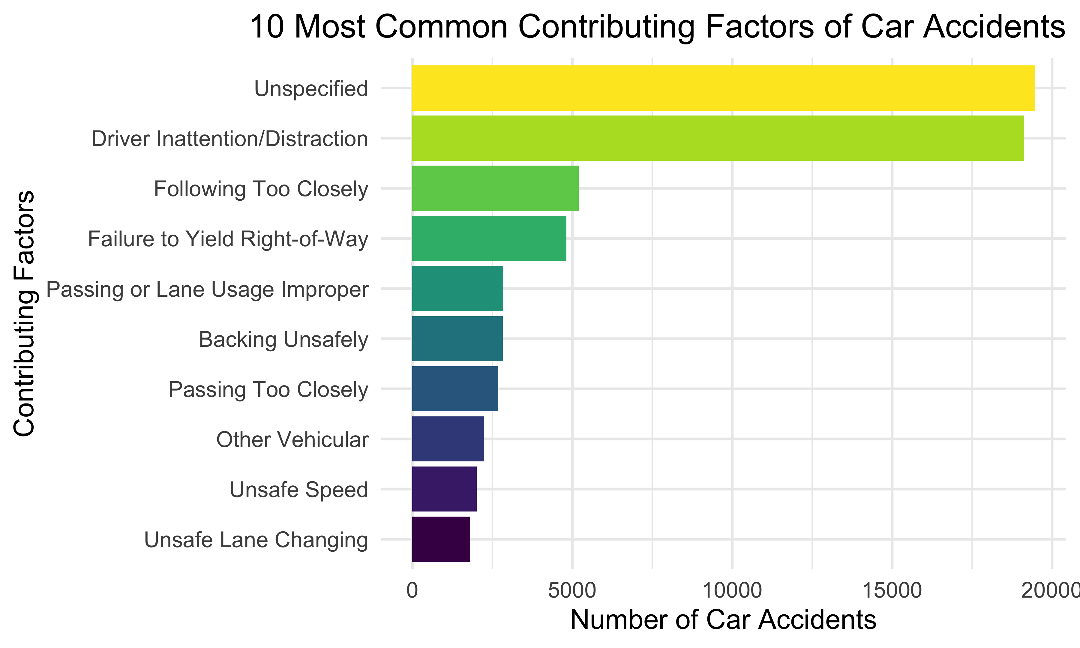 labs(title = "10 Most Common Contributing Factors of Car Accidents",